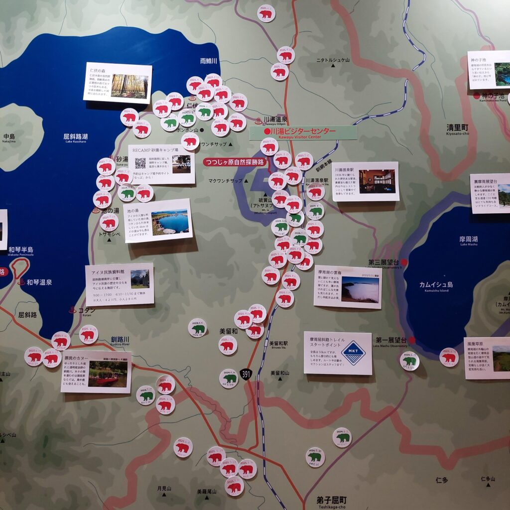 下の写真は 今年9末 弟子屈町を訪れた時の熊出没マップ。